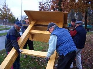 Hier die Bilder vom Bau und Austellen der Ortseingangsschilder.